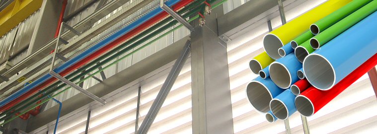 Redes de distribuição: Tubulações novas e ampliações de redes de distribuição, barriletes e by passes de ar comprimido, água (potável, resfriamento e hidrante), GLP, Gás Natural, Oxigênio, Dióxido de Carbono, misturas para solda, dentre outros fluídos.